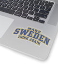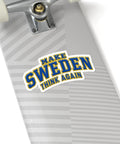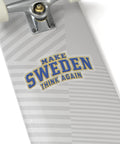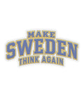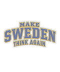 En blågul, kaxig sticker som driver med politiska slogans utan att bli plakat. Den arksvängda varsity-texten “MAKE SWEDEN THINK AGAIN” sitter i skarp blå-och-guld färgsättning och gör sig perfekt på laptop, vattenflaska, journal eller vad du nu vill sätta en passiv-aggressiv markering på. Glansig vinyl håller färgerna brutala och kanterna rena, och den permanenta adhesiven gör att den sitter där du sätter den – länge. Ett enkelt sätt att ge vardagsprylarna lite mer attityd och lite mindre hjärndödhet.