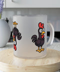 Starta dagen med en mugg som inte tar livet så allvarligt. Det frostade glaset ger motivet en mjuk, lite dimmig känsla medan trycket ändå håller sig klart och färgstarkt. Den upp-och-nedvända tuppen syns genom glaset och gör varje klunk lite roligare – en perfekt mix av bondkomik och stilrent köksdetalj.
